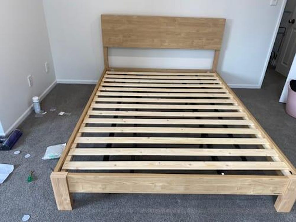 Sturdy bed frame with a beautiful finish. Requires some skill to put together but instructions are well laid out.