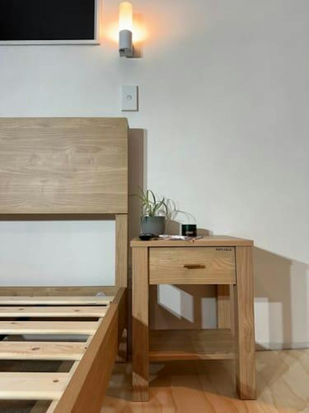 What I appreciate most is the sustainable craftsmanship, made from responsibly sourced wood, it feels good knowing my furniture choice is better for the planet. The bed frame is solid, supportive, and beautifully finished, while the bedside table is the perfect complement, offering practical storage without compromising on style.