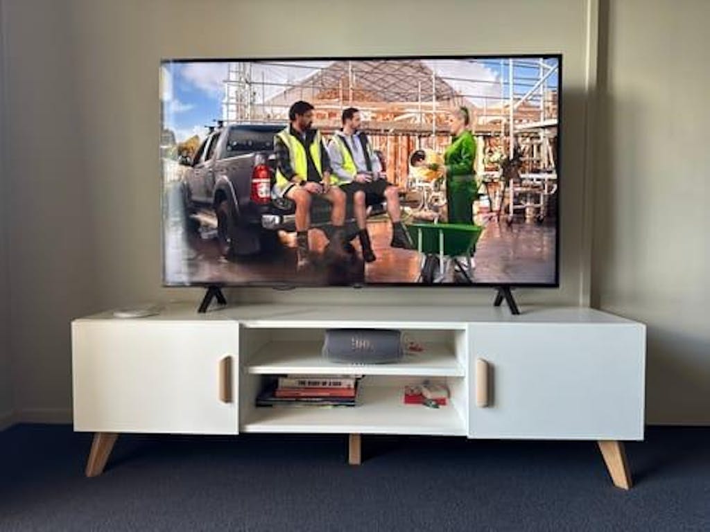 It’s easy to fix and dismantle if required. Perfectly match with the 55” TV and love the colour combination.