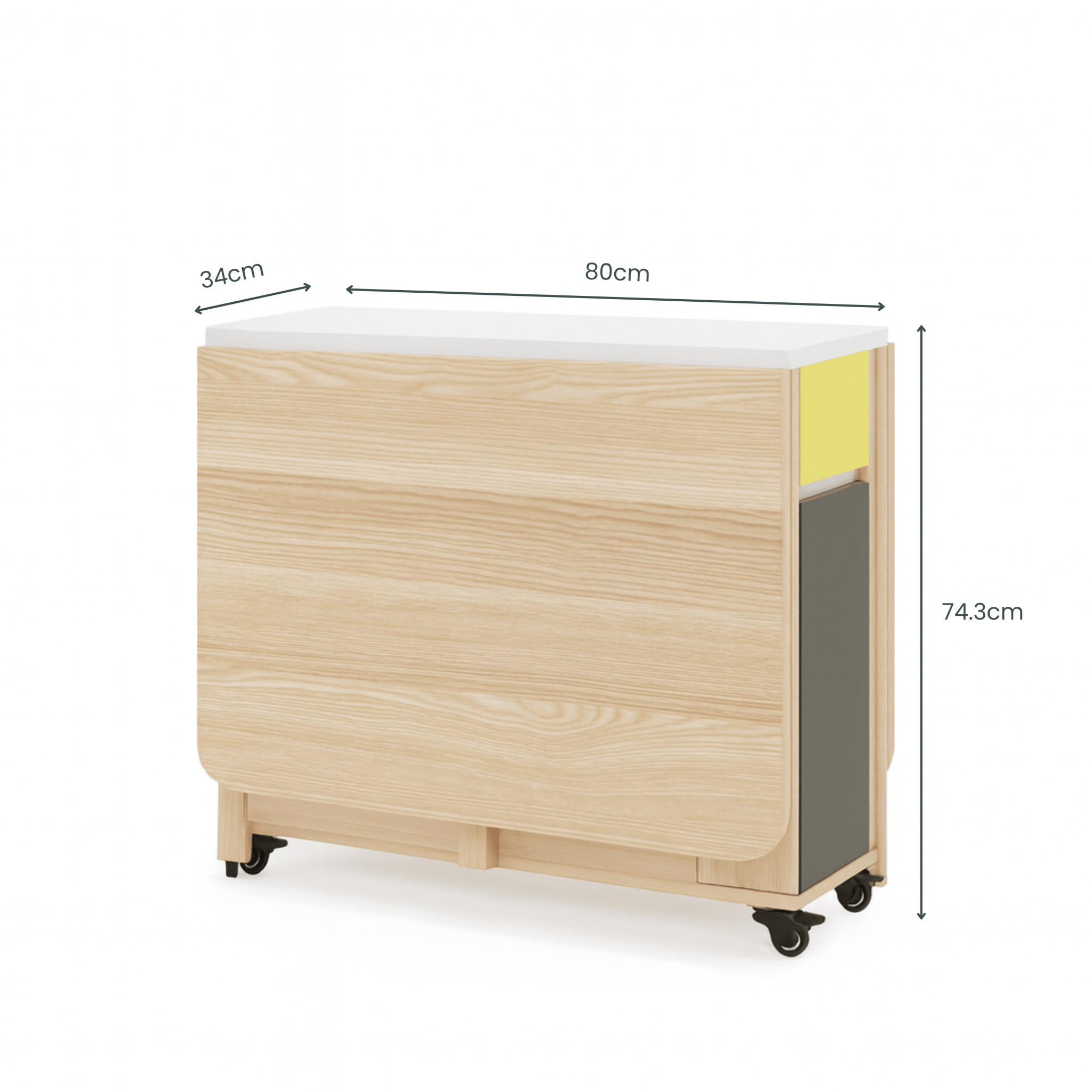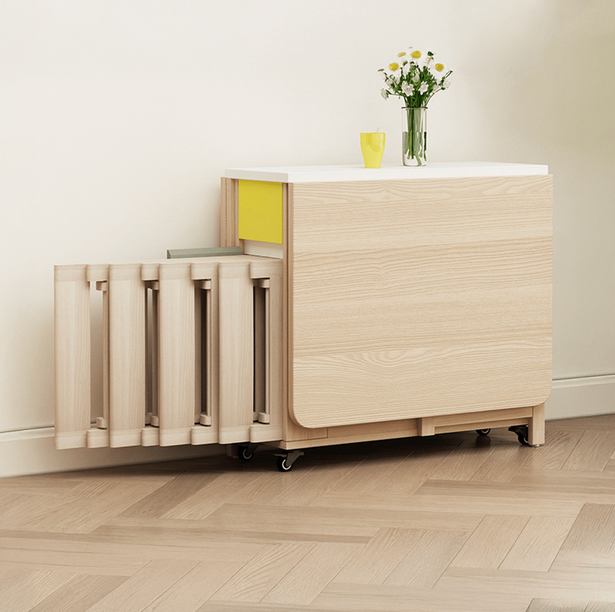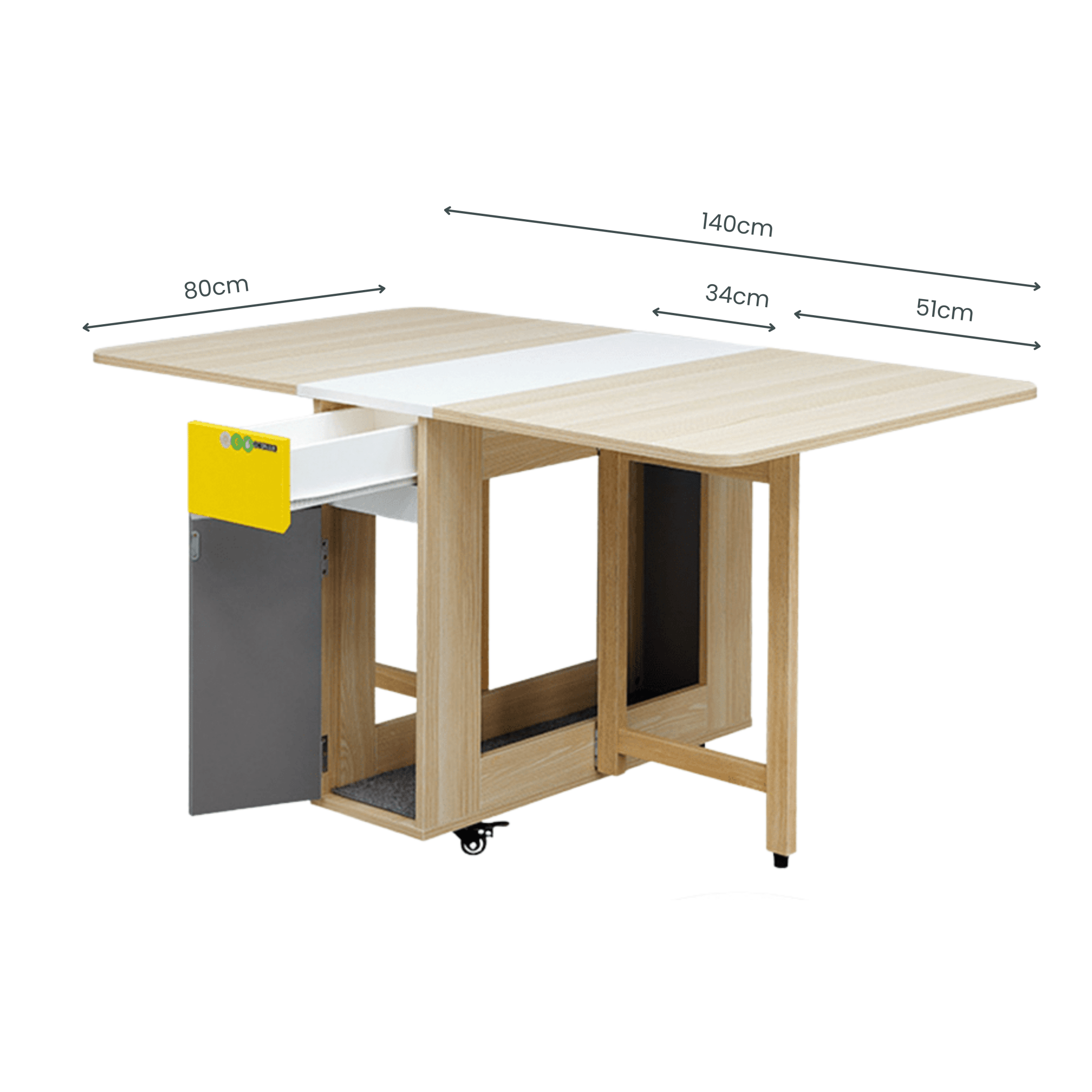 The Lecce Foldable Dining Table is a versatile, space-saving solution perfect for modern homes. Designed with a foldable and extendable top, it easily adapts from a compact breakfast table to seating 4–6 people for family meals. With smooth-rolling wheels for effortless movement and storage capacity for up to four matching foldable chairs (sold separately), this table combines style, functionality, and convenience, ideal for apartments or smaller households.