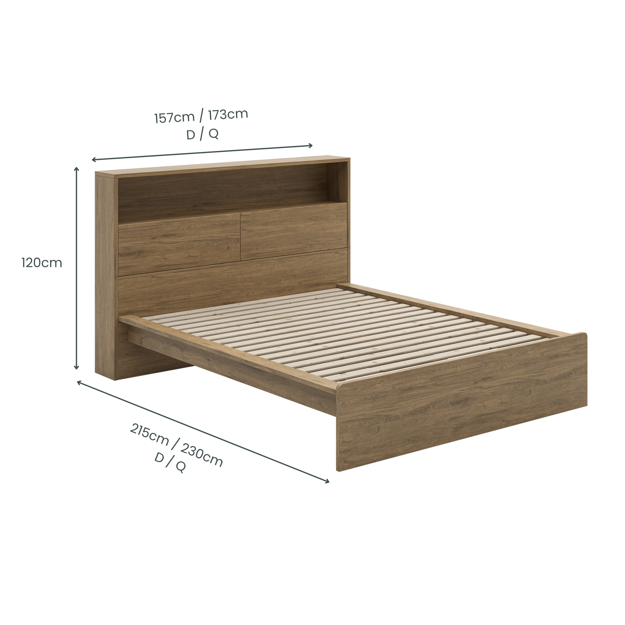 The Platsa Bed Frame with Hidden Storage combines sleek design with practical functionality. Finished in a warm light oak tone, it features a headboard with discreet compartments for organised storage. With a minimalist look, stable build, and raised under-bed clearance, it’s the perfect modern space-saving solution.