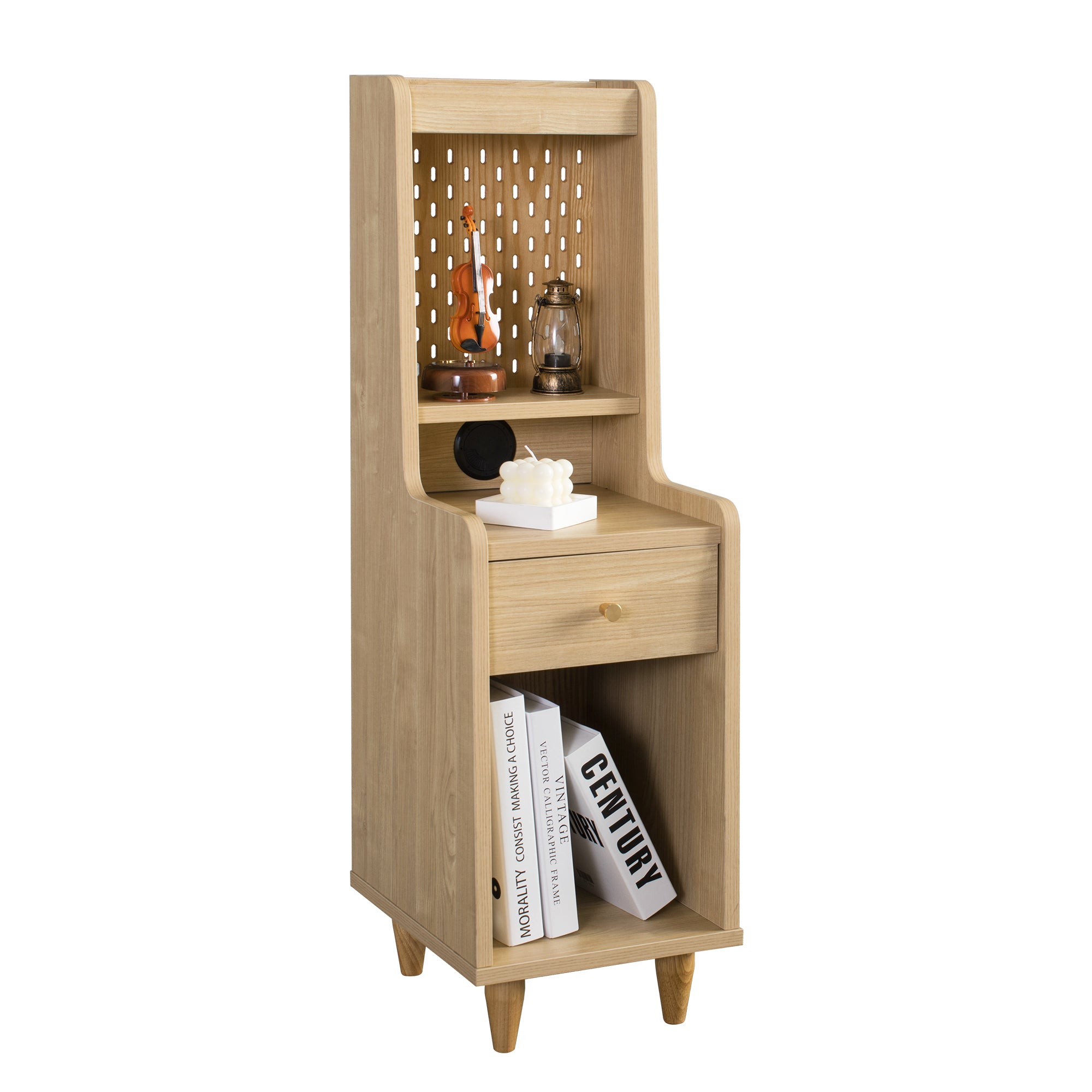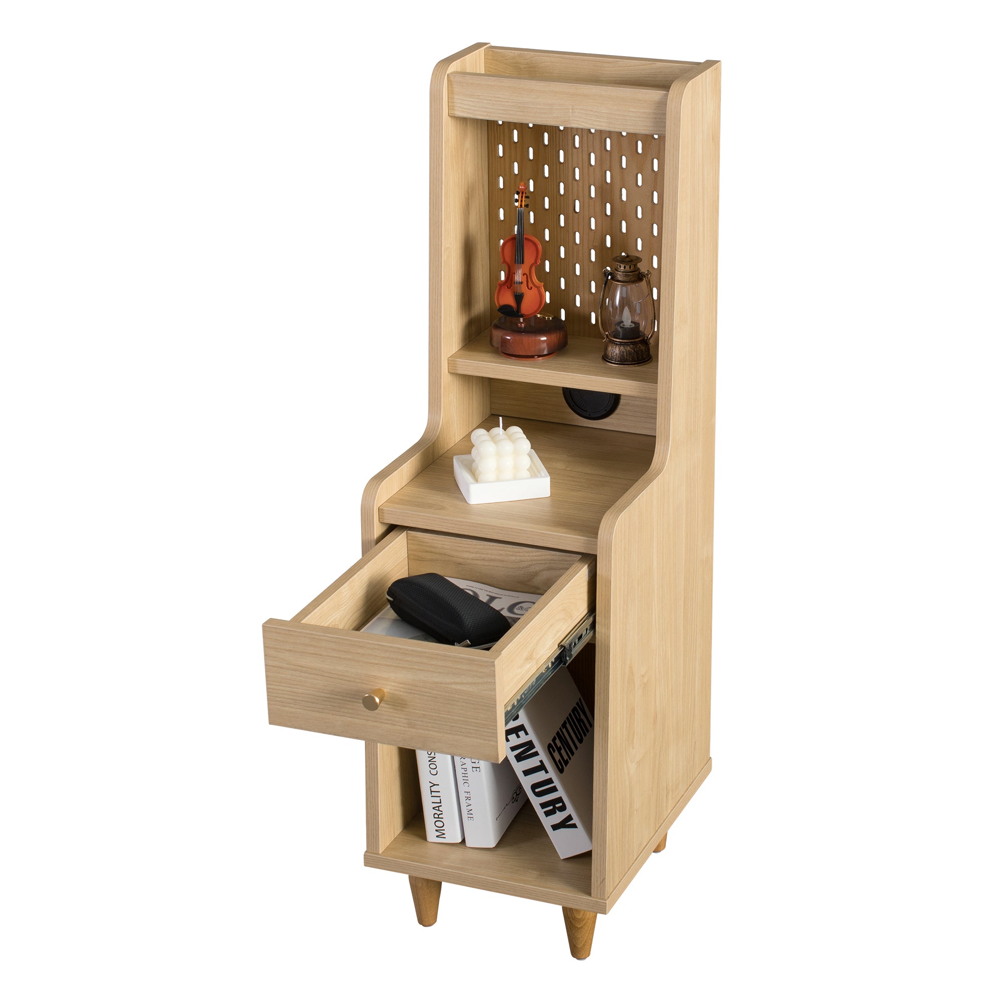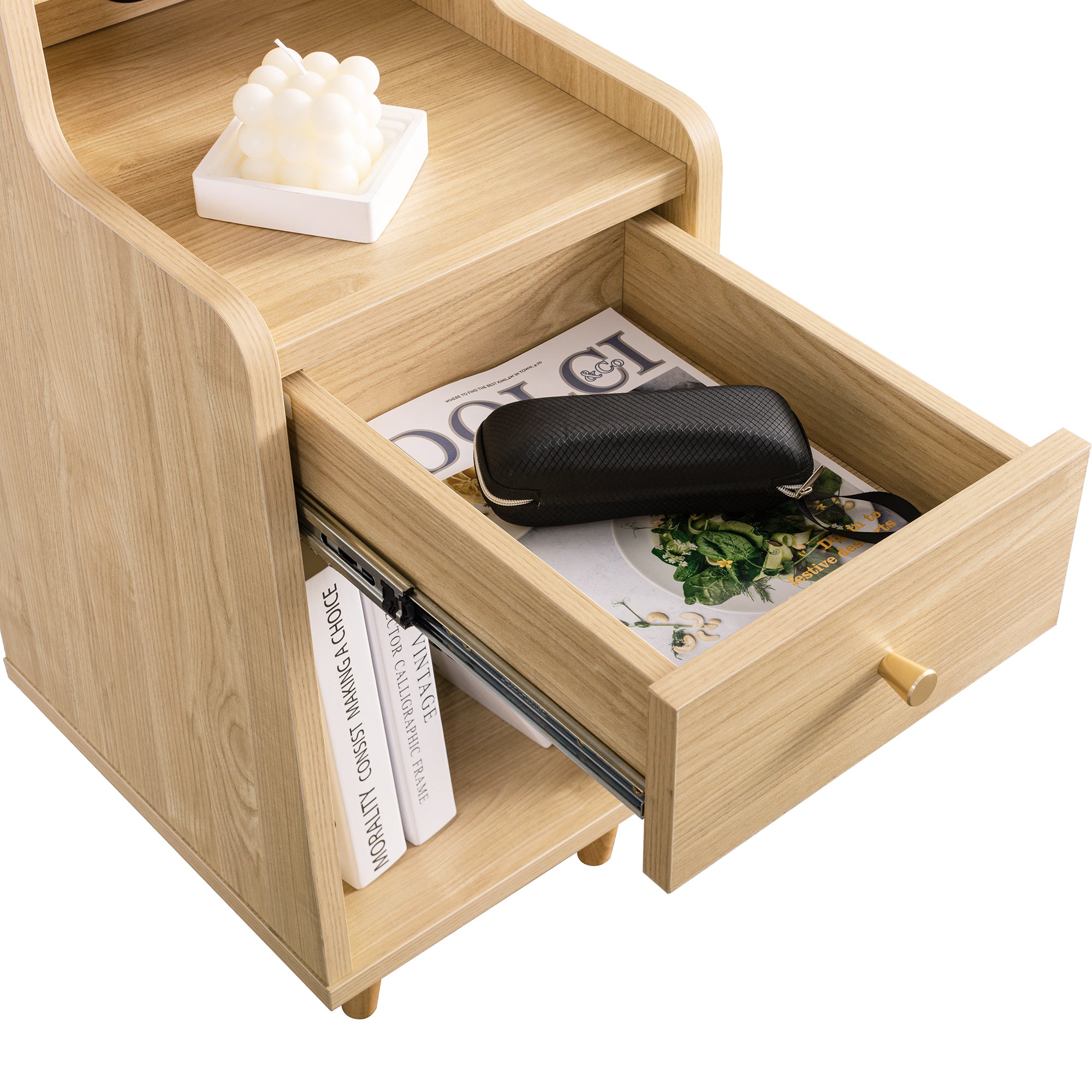 The Sezze Bedside Table blends minimalist design with practical functionality. With multiple storage layers, a smooth-sliding drawer, and a built-in back panel for plug access, it’s perfect for organising essentials while keeping your devices charged. Its natural wood finish and rounded corners add both safety and style, making it suitable for bedrooms, living rooms, or studies.