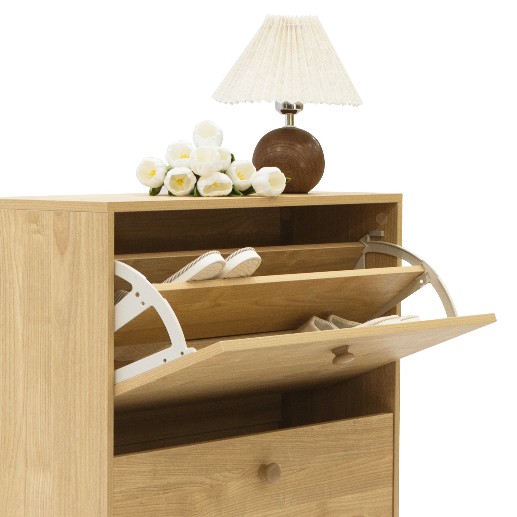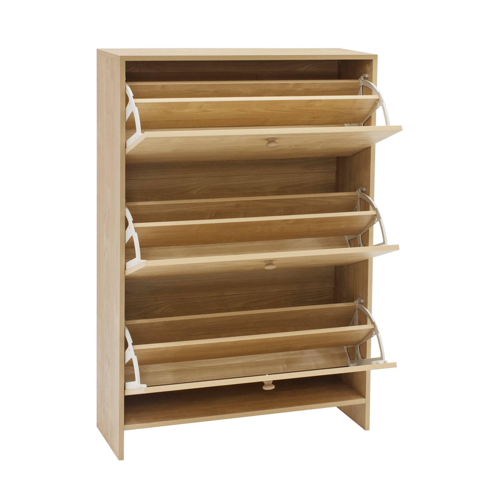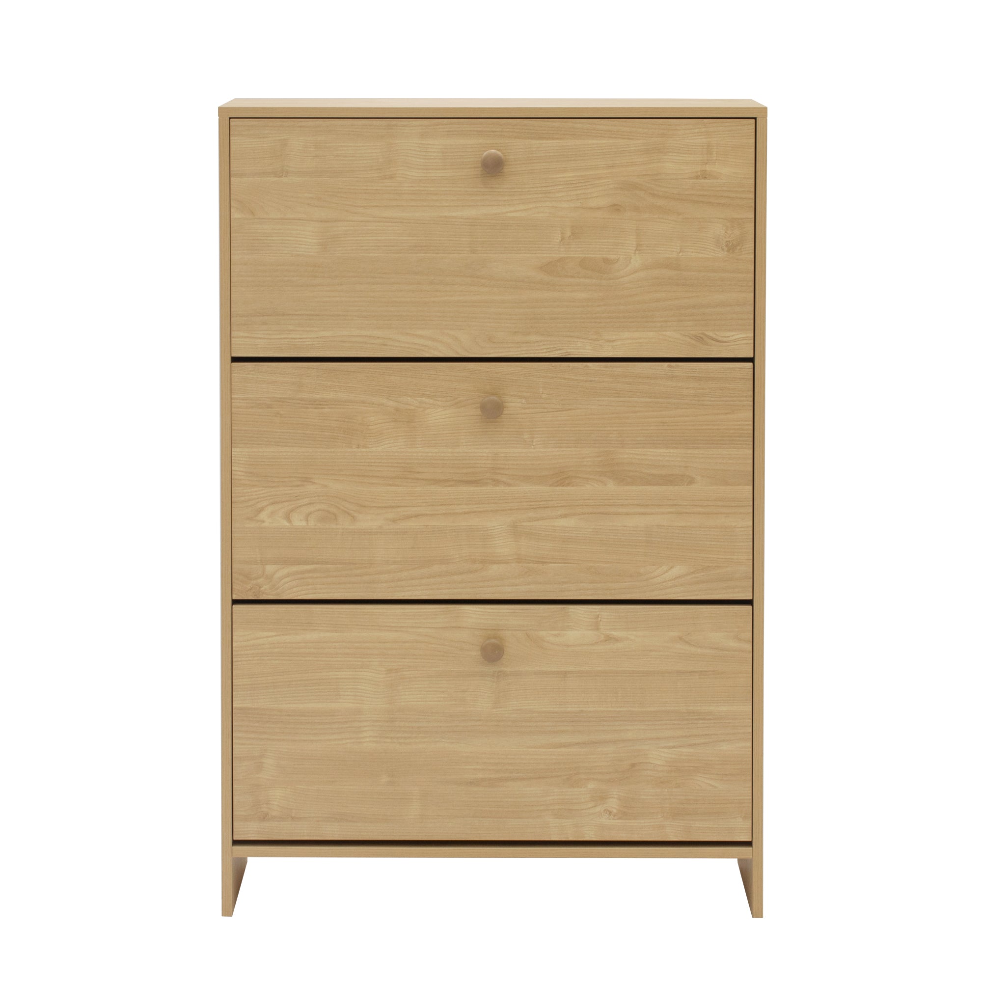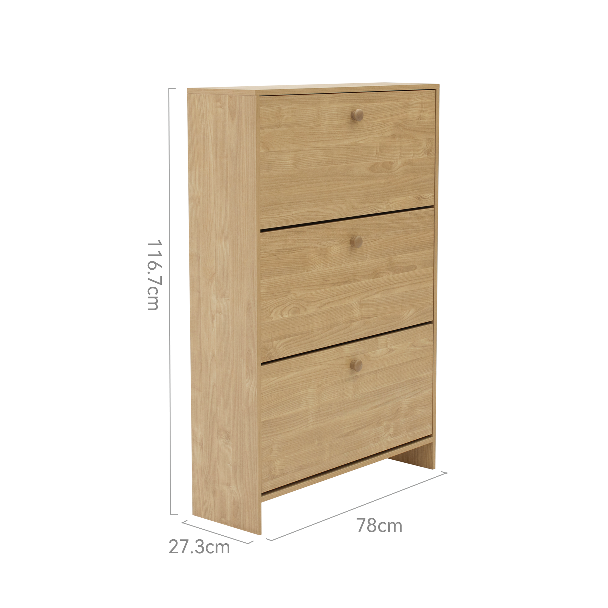 The Sisco 3 Drawer Shoe Cabinet offers a stylish and practical way to keep footwear organised. Finished in a natural oak tone, it features three spacious pull-down drawers and a slimline design, perfect for entryways or bedrooms. Crafted from durable particleboard with metal fittings and rear ventilation, it ensures stability while keeping shoes fresh and odour-free.
