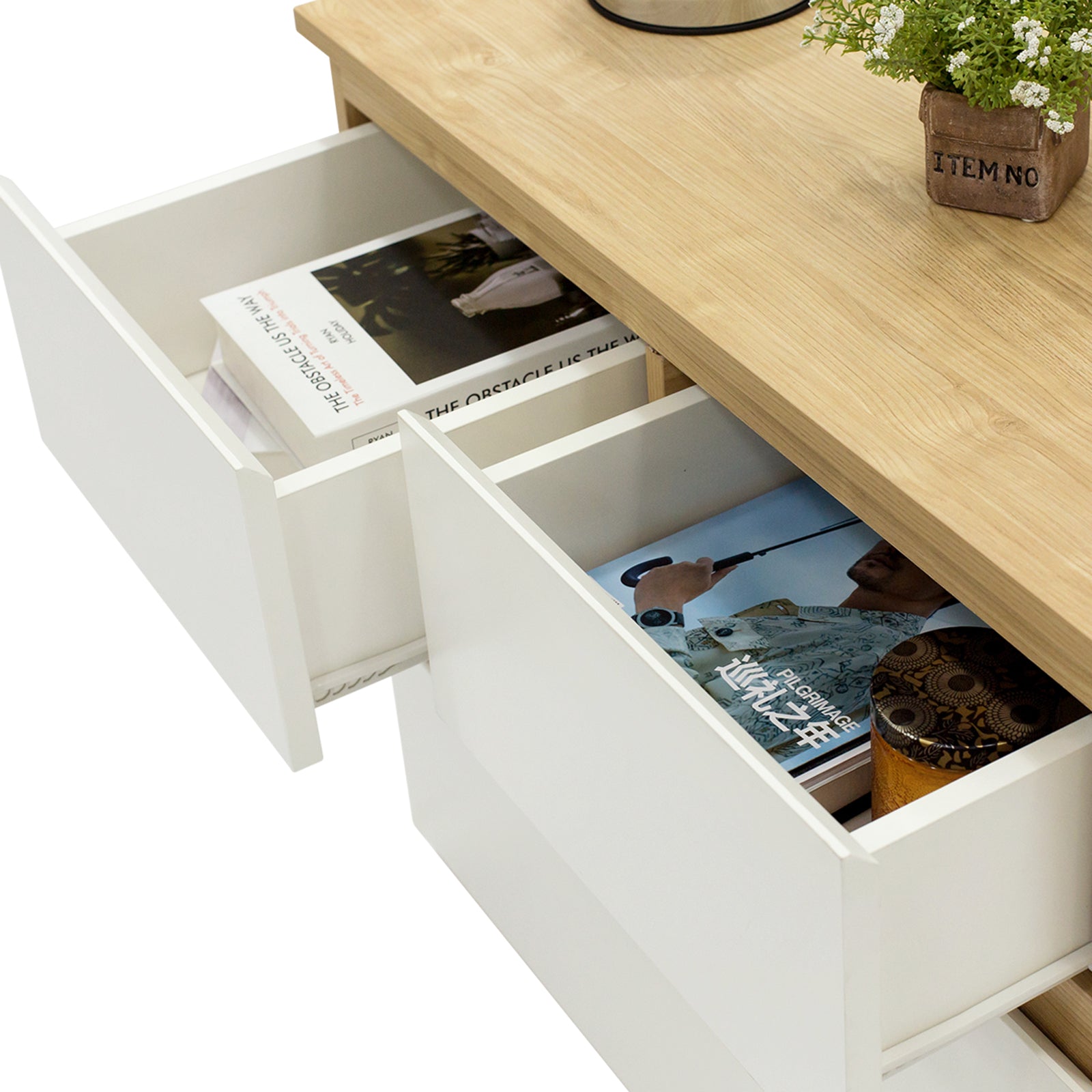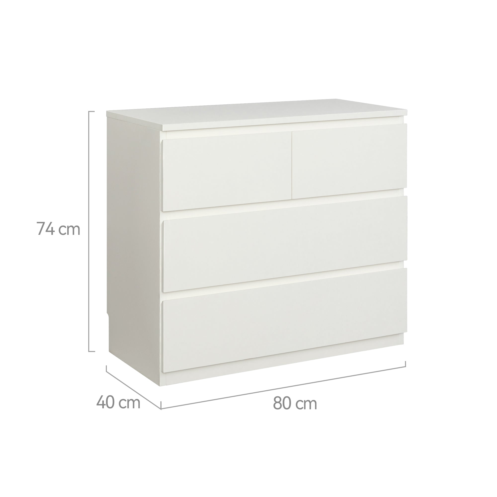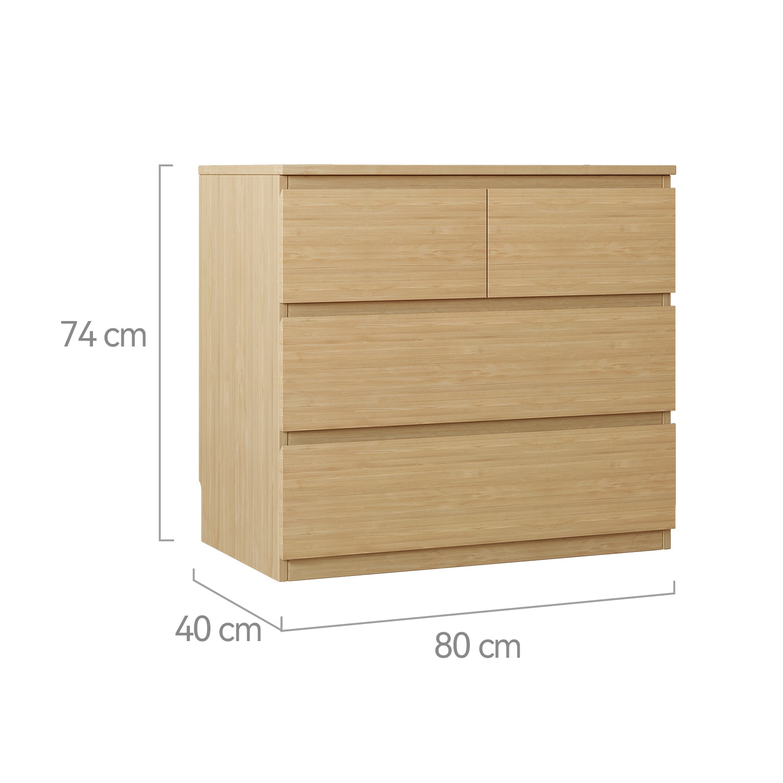 Introducing the Sotta 4 drawers with ample space for clothes, accessories, and other essentials. Its large flattop also serves as a great display platform for your photo frames, plants, or decorations.