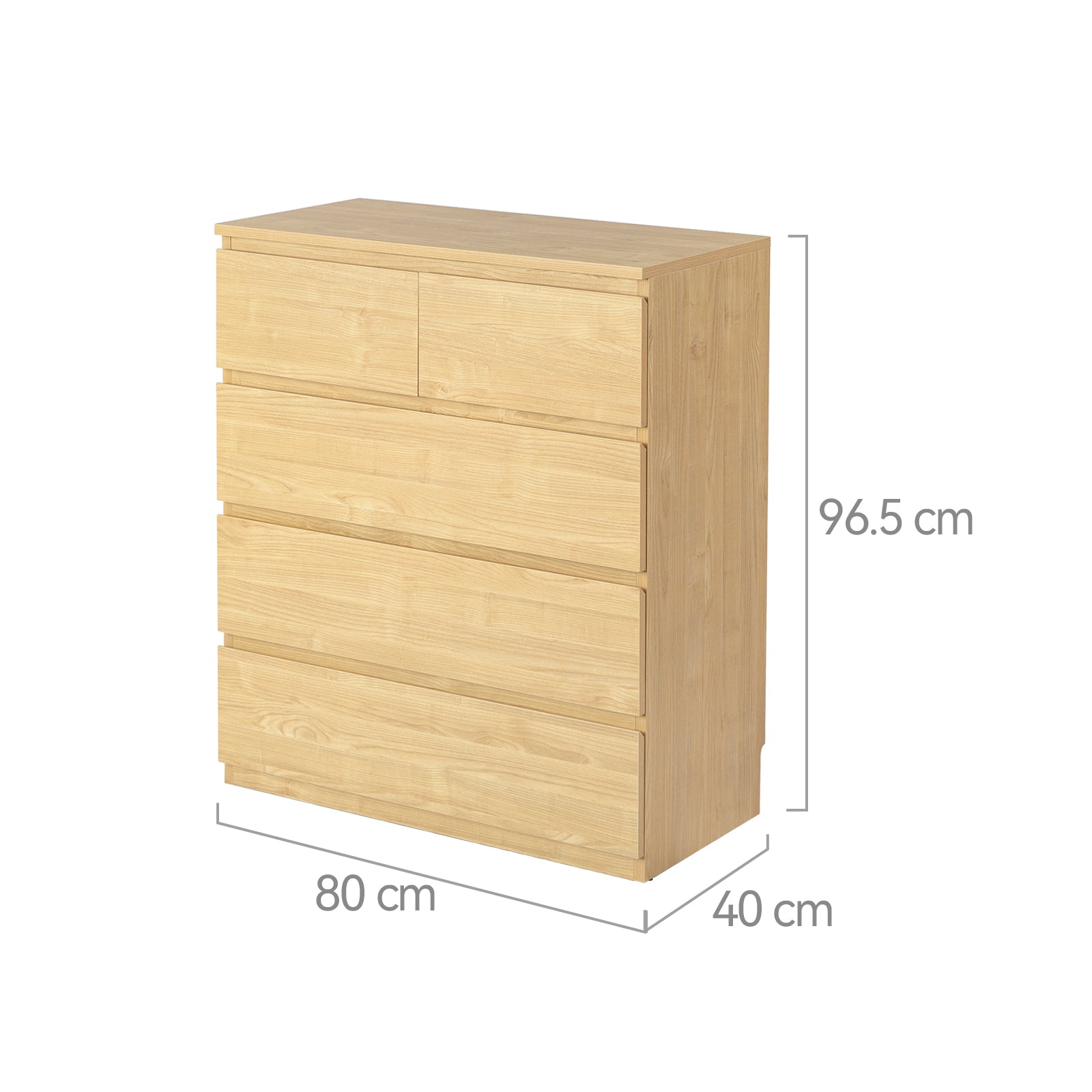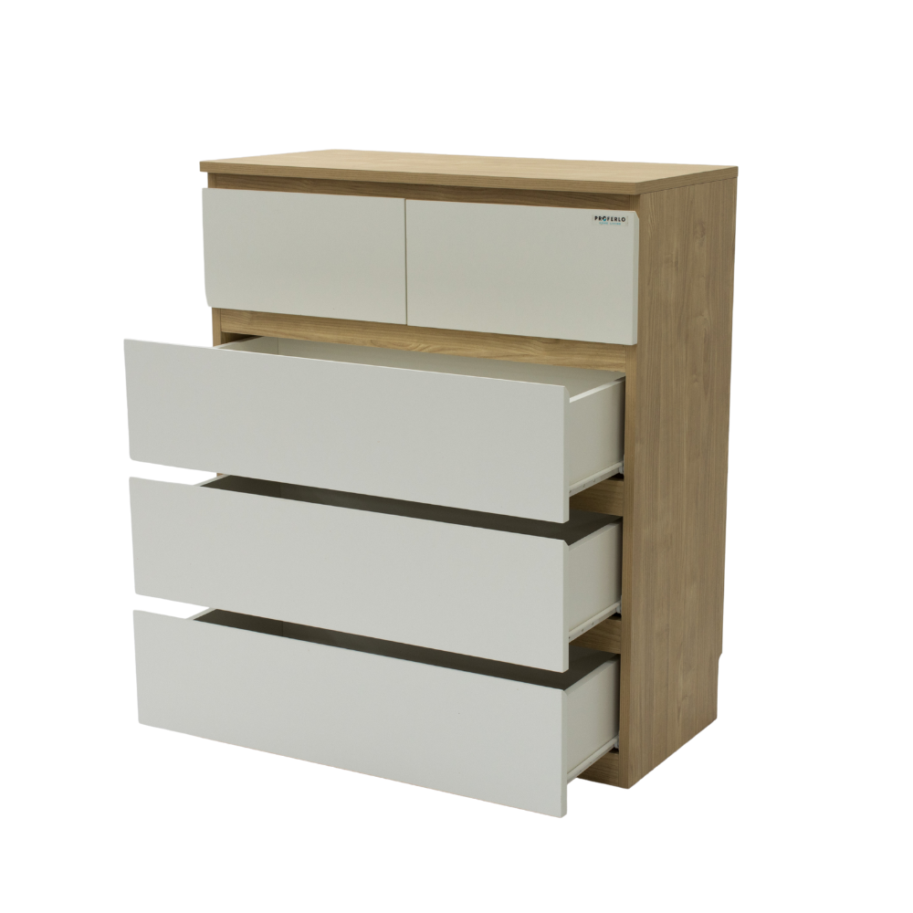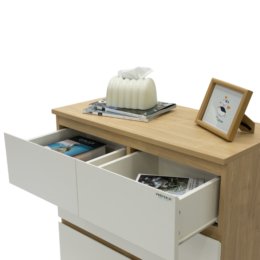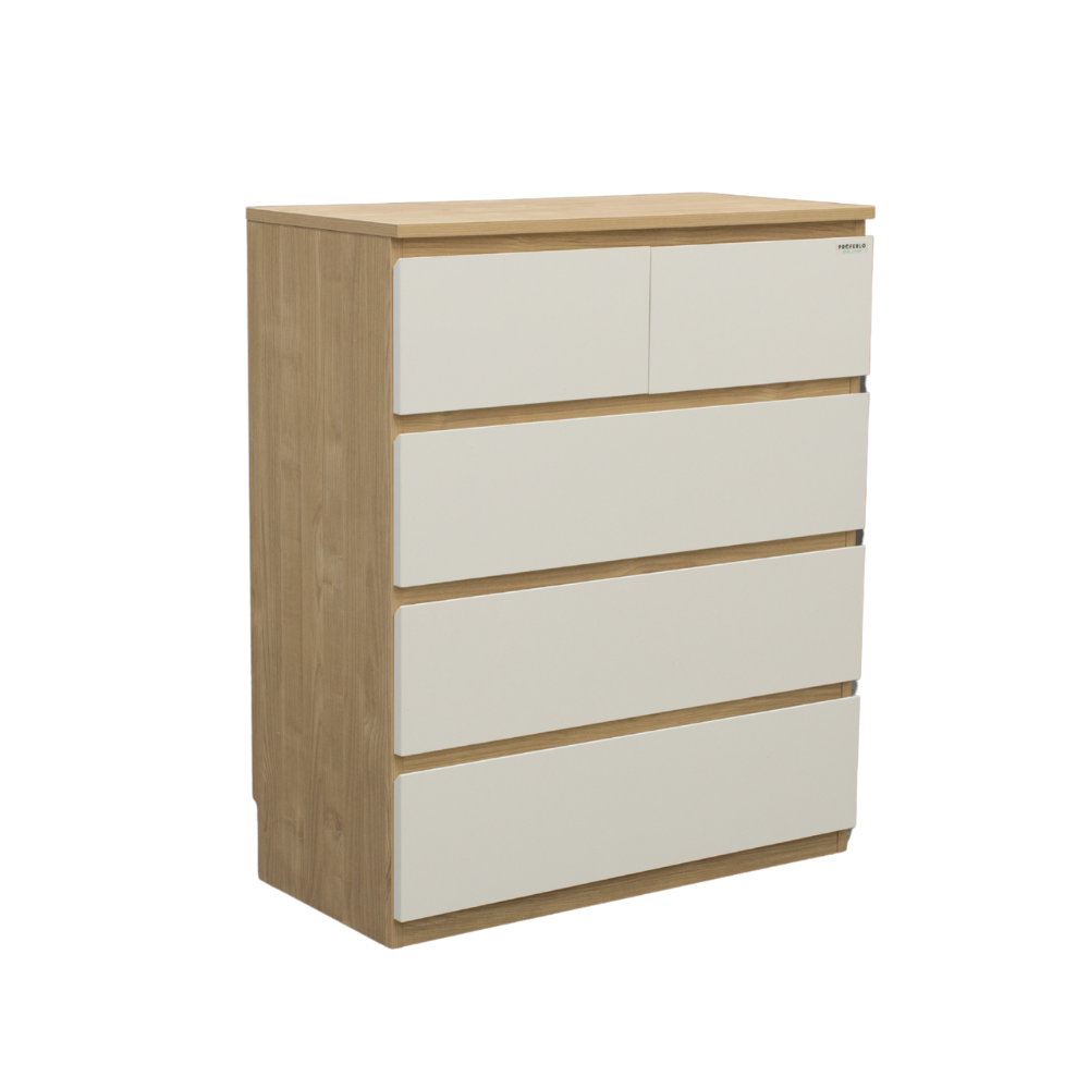 Introducing the Sotta 5 drawers Tallboy with ample space for clothes, accessories, and other essentials. Its large flattop also serves as a great display platform for your photo frames, plants, or decorations.