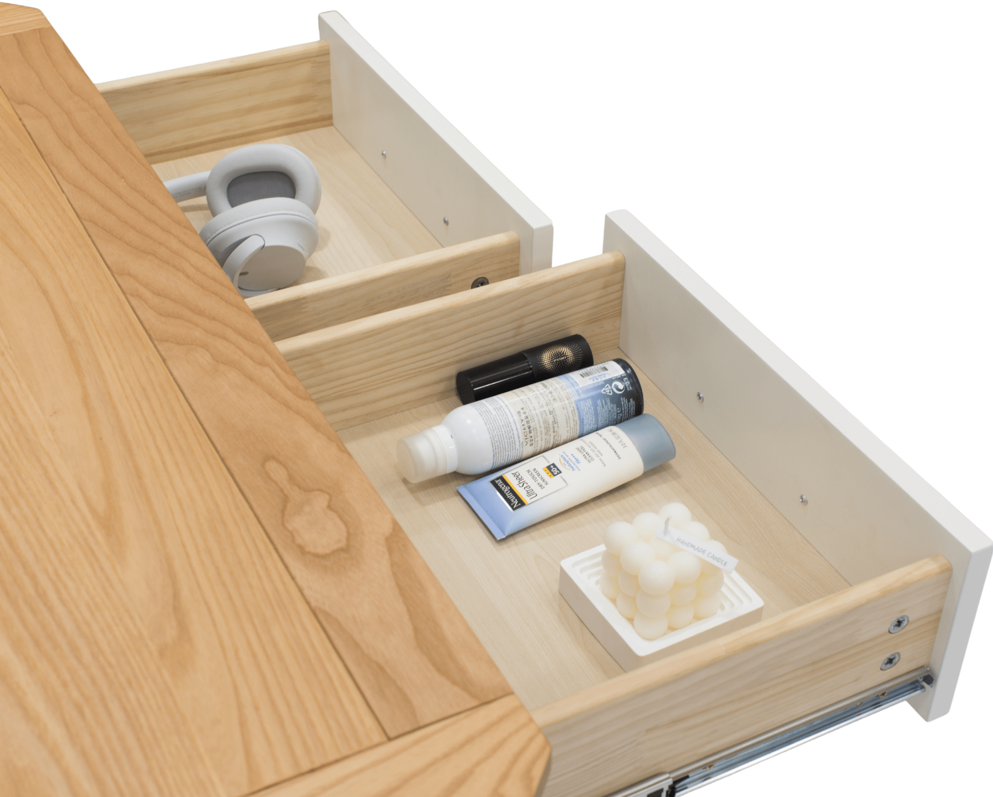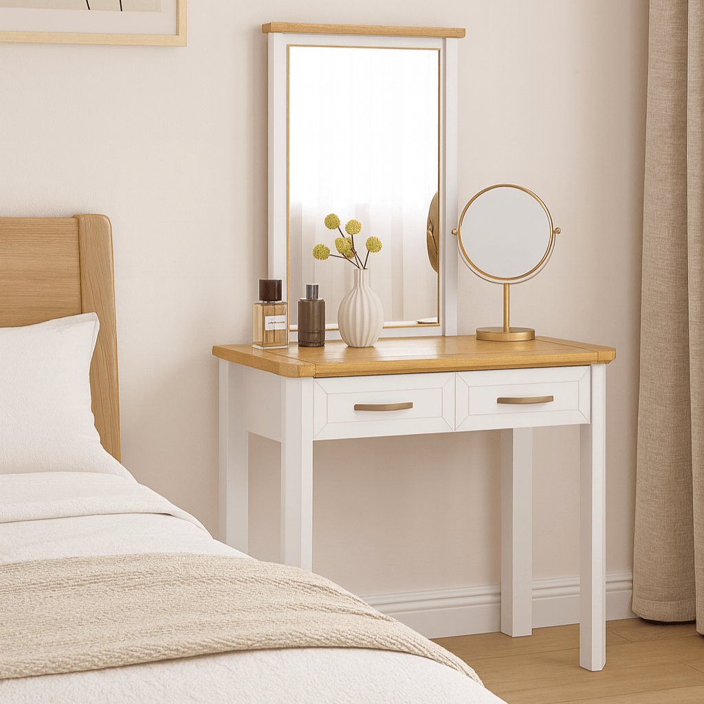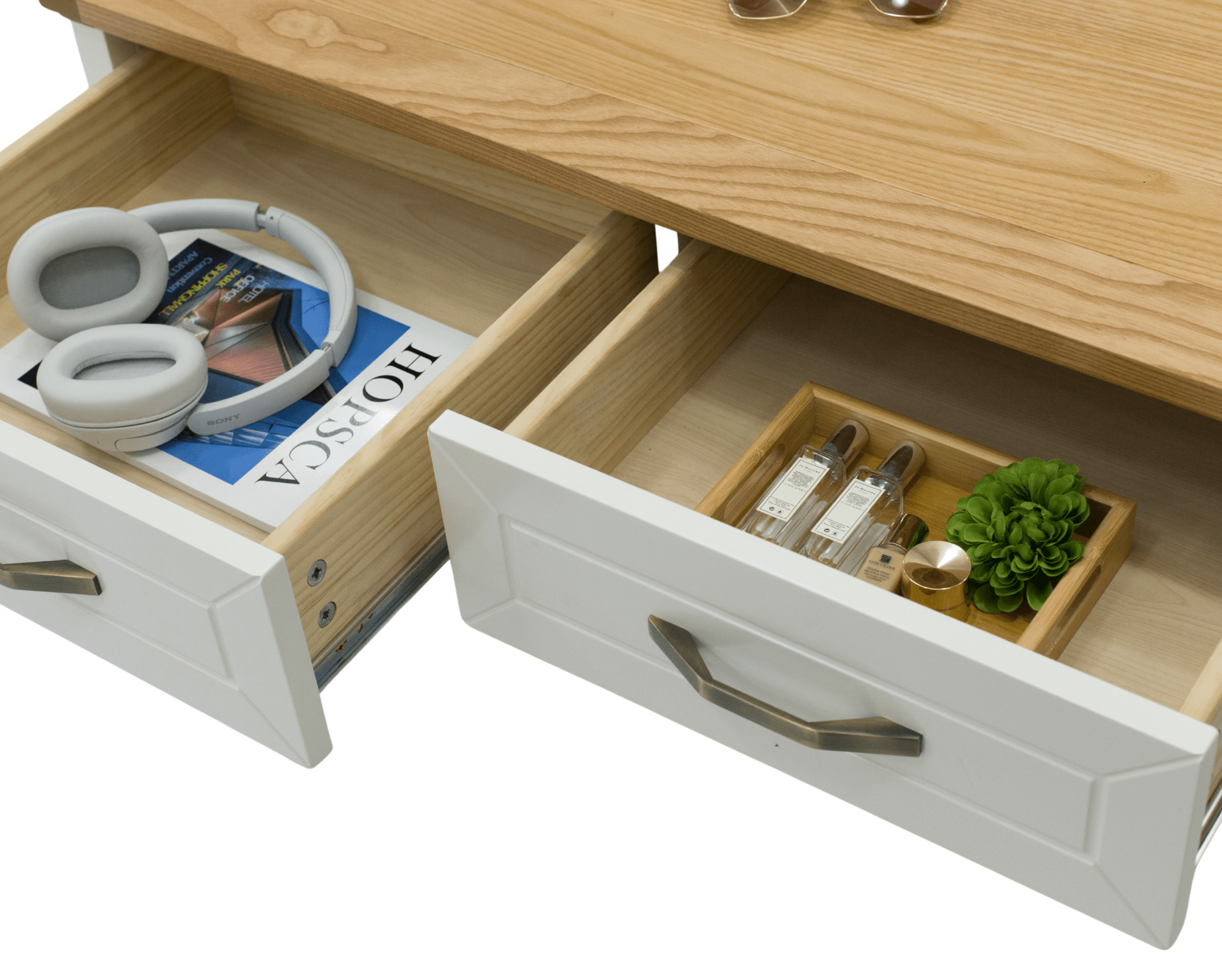 Two spacious drawers provide convenient storage for cosmetics, jewellery, or accessories