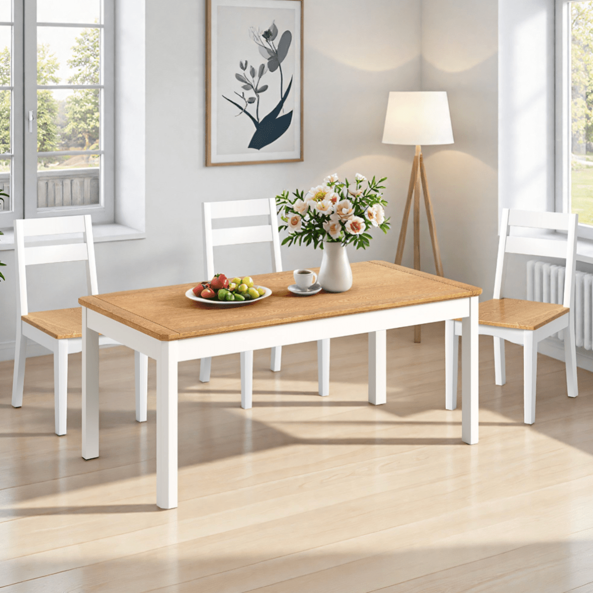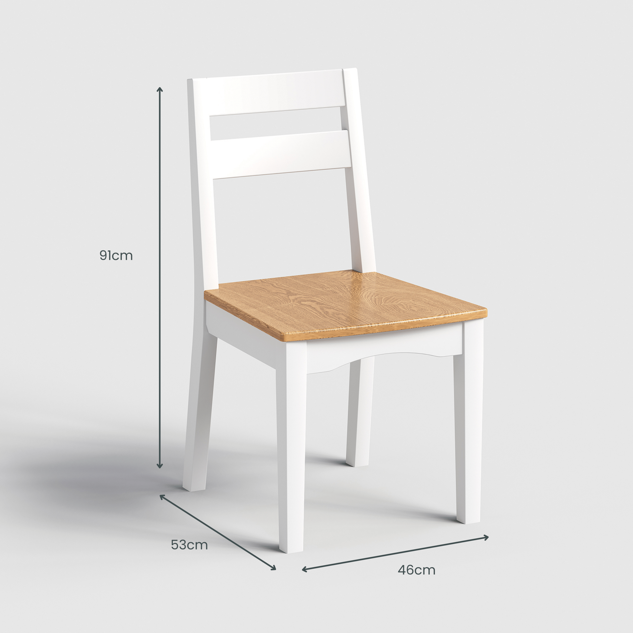 The Stoven Dining Chairs bring classic charm and durability to your dining space. Crafted entirely from solid wood, these chairs feature a crisp white frame paired with a warm natural wood seat, offering a timeless two-tone design. Perfect for both modern and farmhouse-style interiors, they combine strength, comfort, and versatility—making them an ideal choice for everyday dining.